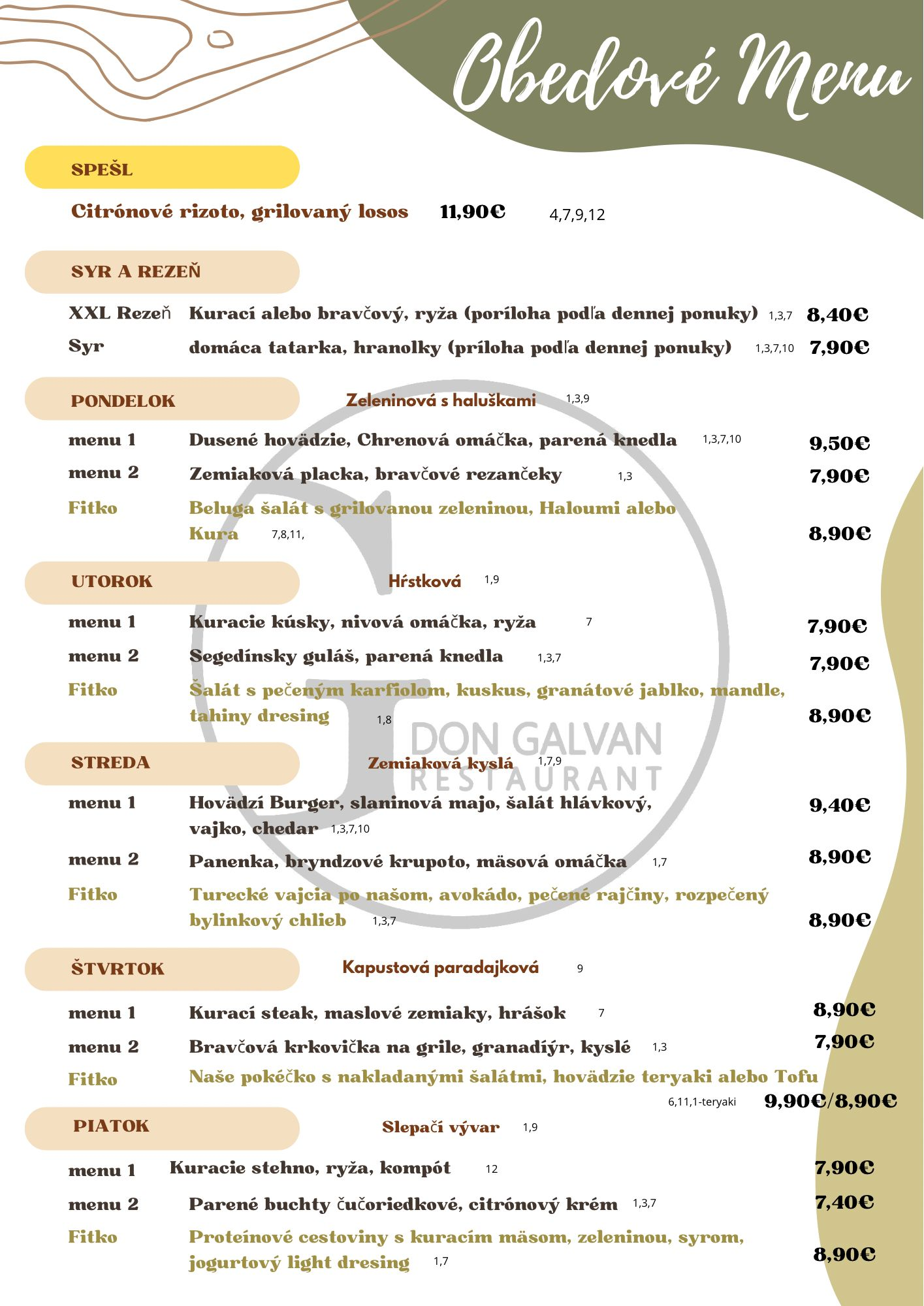 MENU REŠTAURÁCIE DON GALVAN